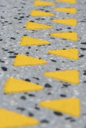 Teraco schody jsou využívány nejen v interiéru, ale také jako vchodové schody k bytovým či rodinným domům. Při použití schodů v exteriéru je nutné tyto opatřit protiskluzovou epoxidokorundovou nebo tryskanou úpravou.
